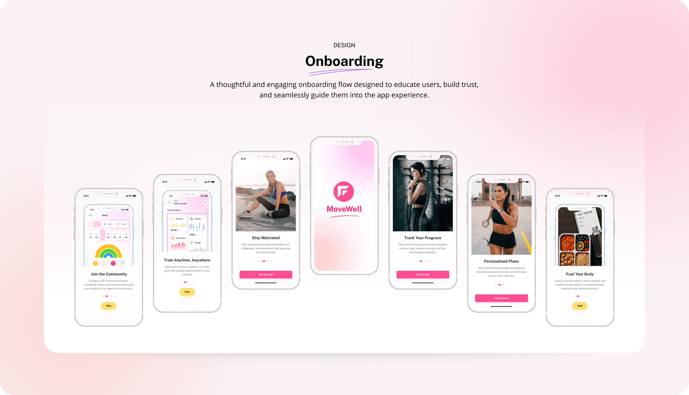 MoveWell is a concept design project showcasing a modern, mobile-first fitness app built in Figma. With 78 fully designed screens for iOS and Android, it explores the end-to-end product journey, from onboarding and authentication to workouts, progress tracking, and community features.
